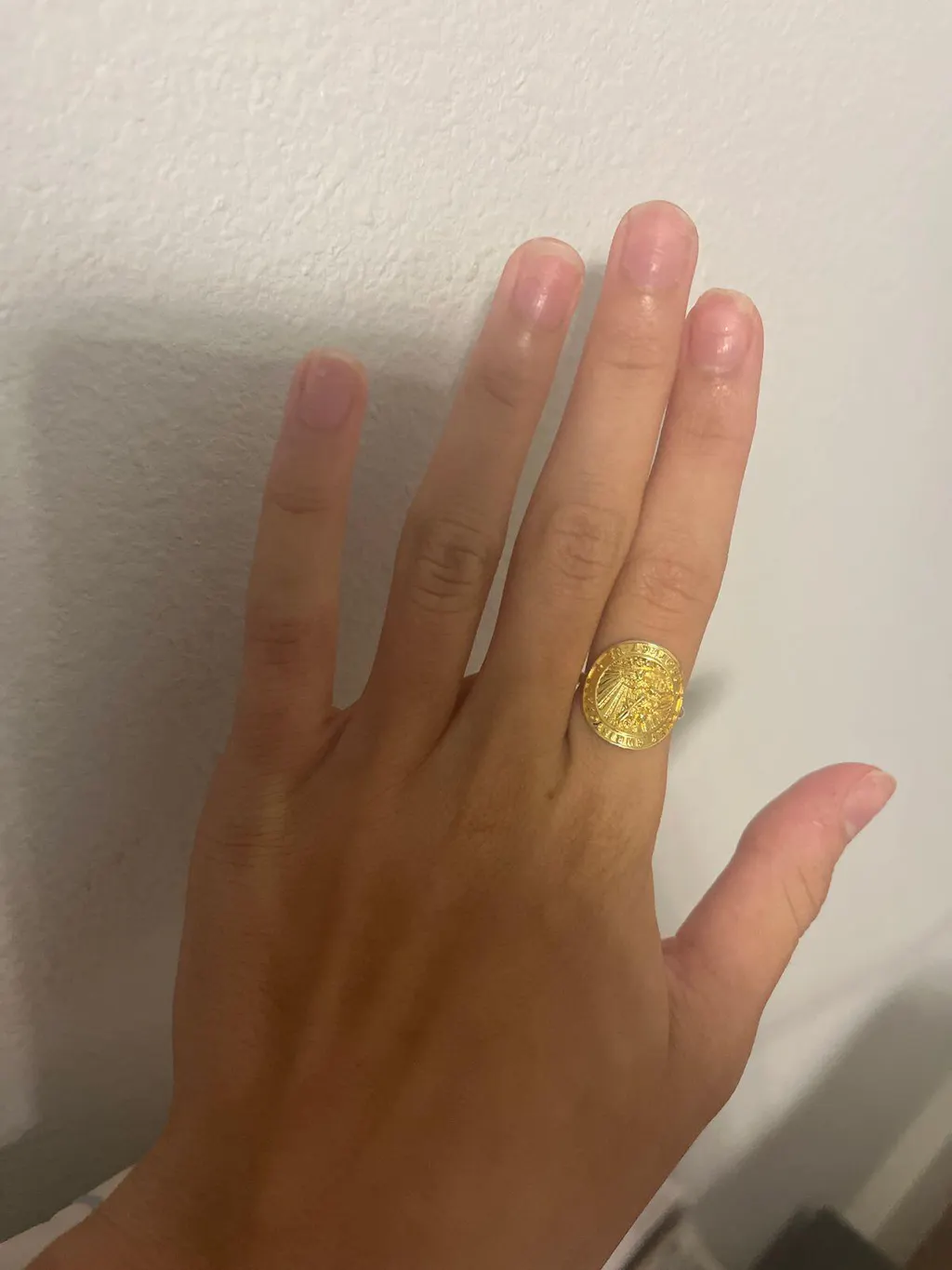 - 17mm circular medallion that curves to fit finger